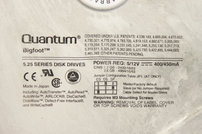 QUANTUM Bigfoot 5,25 Series Disk Drives 1,2GB Fetplatte Harddisk 131633343146Y