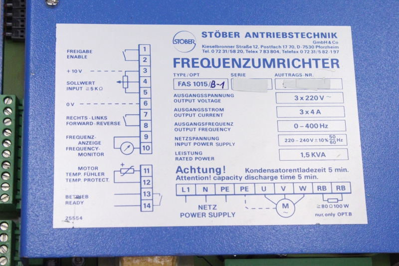 STÖBER FAS 1015 B-1 3x220V 3x4A 1,5 KVA Frequenzumrichter FAS1015/B-1