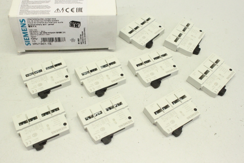 9x SIEMENS querliegend 1S+1Ö  Hilfsschalter Kontaktblock 3RV1901-1E OVP