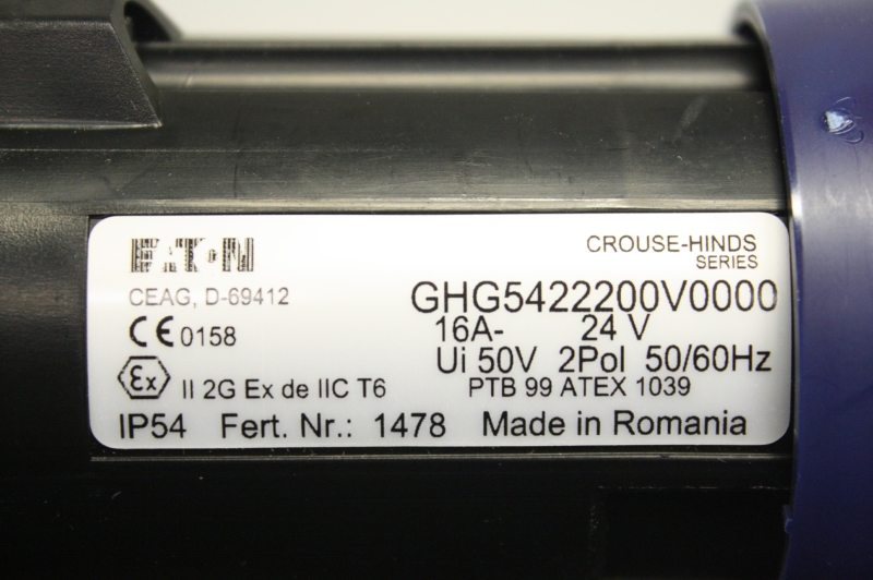 EATON GHG5422200V0000 GHG51 16A 2-pol 24V Stecker Ex Zone 1 OVP