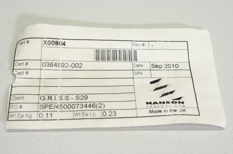 HANSON X00804 SPE/4500073446(2) Control Valve Spring Feder 0364892-002