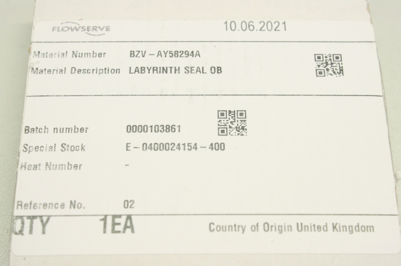 FLOWSERVE 2592451 AY58294A BZV Seal Gleitringdichtung Labyrinthdichtung OVP