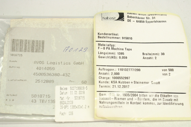 HABASIT F-0 PA 1395x30mm Riemen Band für Klebemaschine Kohmann HHS 5018715